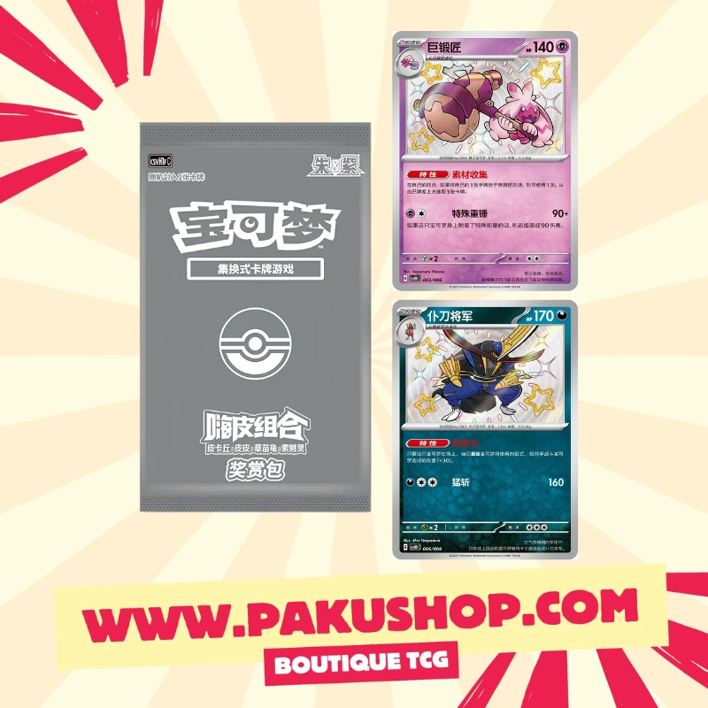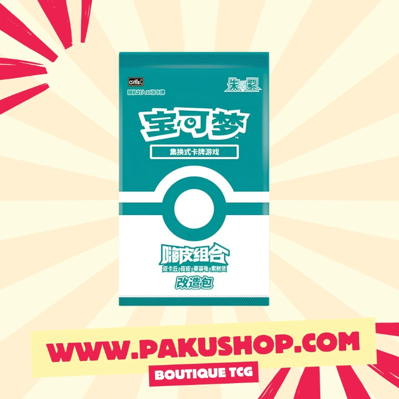 Le coffret Pokémon chinois Happy Combo Pikachu & Mélofée est une édition exclusive issue d’un partenariat avec KFC Chine. Il contient 7 boosters promotionnels Collect 151, mettant à l’honneur les 151 Pokémon de la première génération, ainsi que des packs spéciaux destinés au jeu et à l’amélioration de deck.