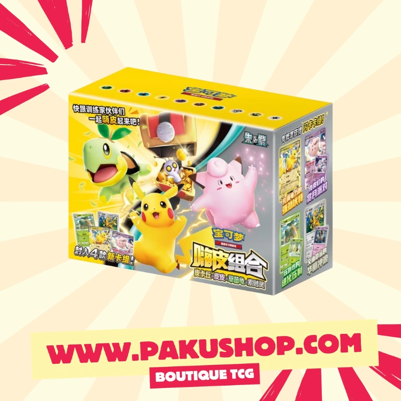 Le coffret Pokémon Card Happy Combo Pikachu & Mélofée est une collection complète et originale, pensée pour jouer immédiatement tout en offrant un fort intérêt pour les collectionneurs. Cette édition officielle chinoise est issue d’un partenariat exclusif avec KFC Chine, ce qui en fait un produit introuvable sur les circuits européens classiques.